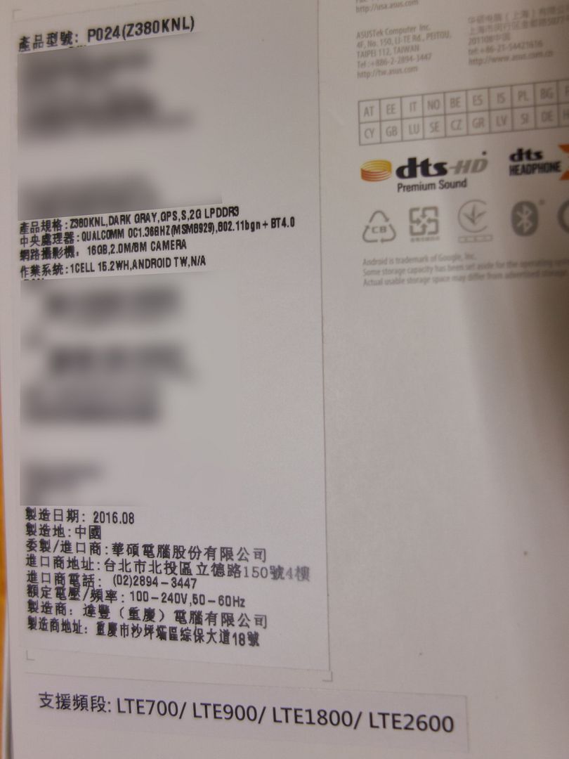 本來想要便宜又是高通615的Z380KL,結果被告知已經停產換成Z380KNL